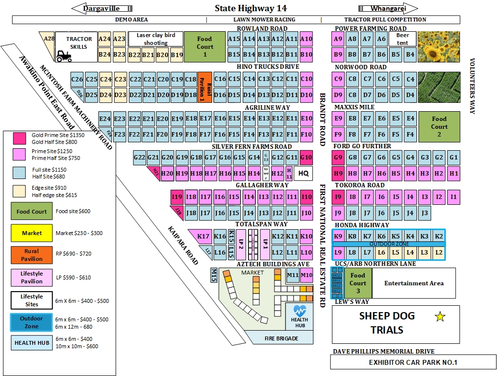 Sites prices for Outdoor Sites, Pavilions and Market area can be found below. Click on the maps to enlarge it.